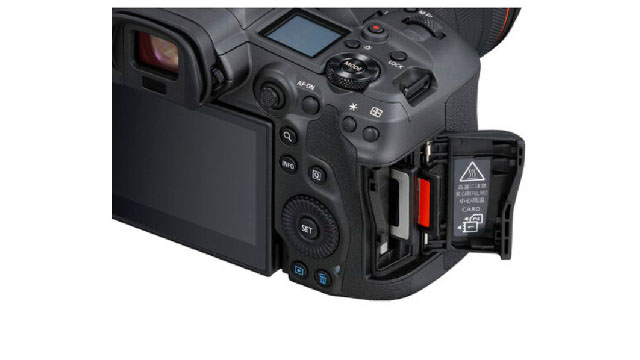 Canon EOS R5 با بدنهای مقاوم و ارگونومیک طراحی شده که استفاده طولانیمدت را راحتتر میکند. همچنین، اتصالات شامل Wi-Fi، Bluetooth، USB-C و HDMI امکان انتقال سریع فایلها و کنترل دوربین از راه دور را فراهم میکند. این مدل دارای دو درگاه کارت حافظه CFexpress Type B و SD UHS-II است که امکان ذخیره فایلهای حجیم را فراهم میکند.